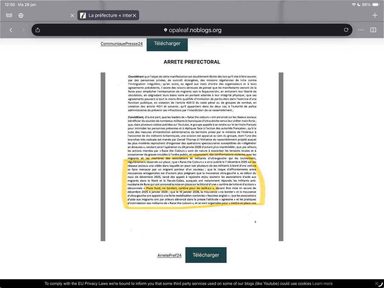 PS : Suite à la mobilisation de l'hiver 2025/2026, je vous mets un petit article rigolo qui explique que les néo nazis anglais qui viennent emmerder les assos de soutien dans le nord se sont eux même renvoyer chez eux, par peur échauffourées avec la terrrrrible cantine.